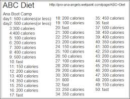 ABC Diet stands for "Ana Boot Camp Diet." Basically it works by using extremely low calories (every day is 500 calories or less, with one day of 800 calories for 50 straight days with random fasting days) and by tricking the body into not going into slow metabolic starvation mode because it is constantly switching up the amount of calories taken in from day to day. Honestly this one is really hard to follow. If you do it I commend you. I've never finished it personally. I'm currently doing the Skinny Girl Diet, (below) which is a bit easier because of the unlimited fruits and veggies.